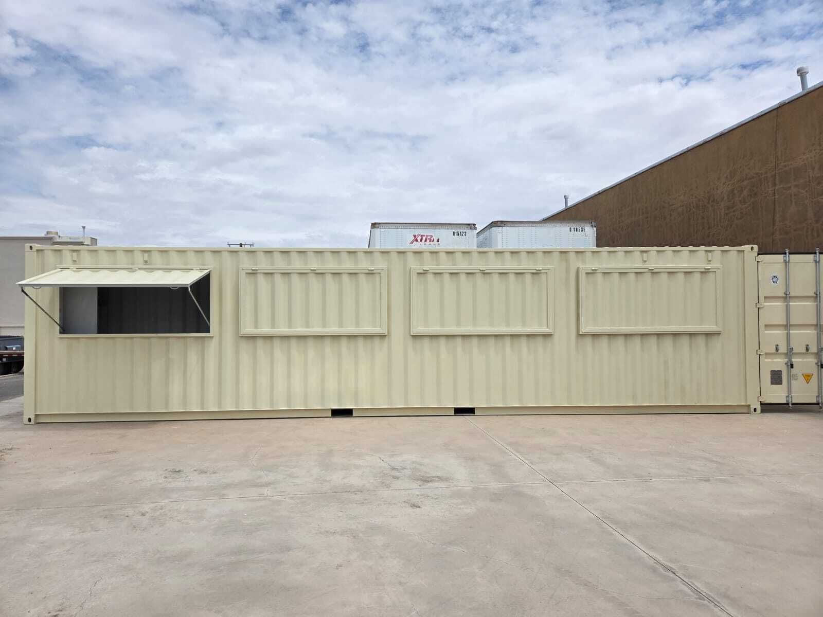 Shipping containers are an excellent base for concession stands because they’re secure, weather-resistant, and easy to transport. With a small footprint and durable steel structure, they can be modified to include serving windows, doors, counters, shelves, electrical wiring, and more — all while complying with safety requirements and local codes.